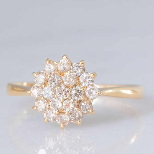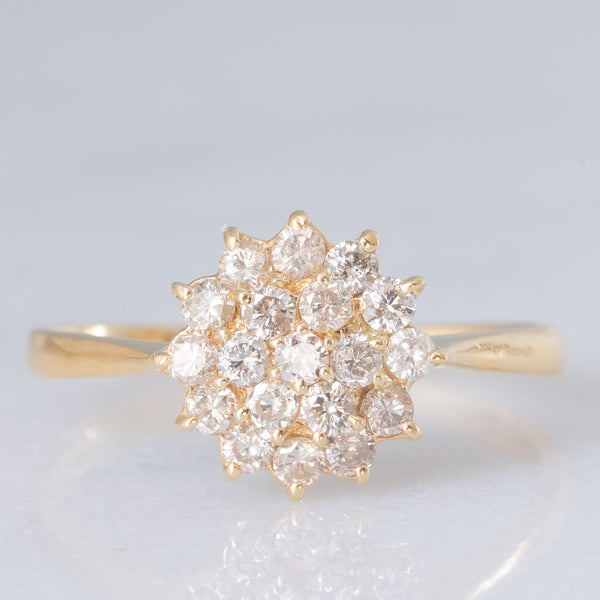 Anello a fiore vintage in oro giallo 14K con diamanti di taglio brillante (0.40ctw ca.), anni ‘70
