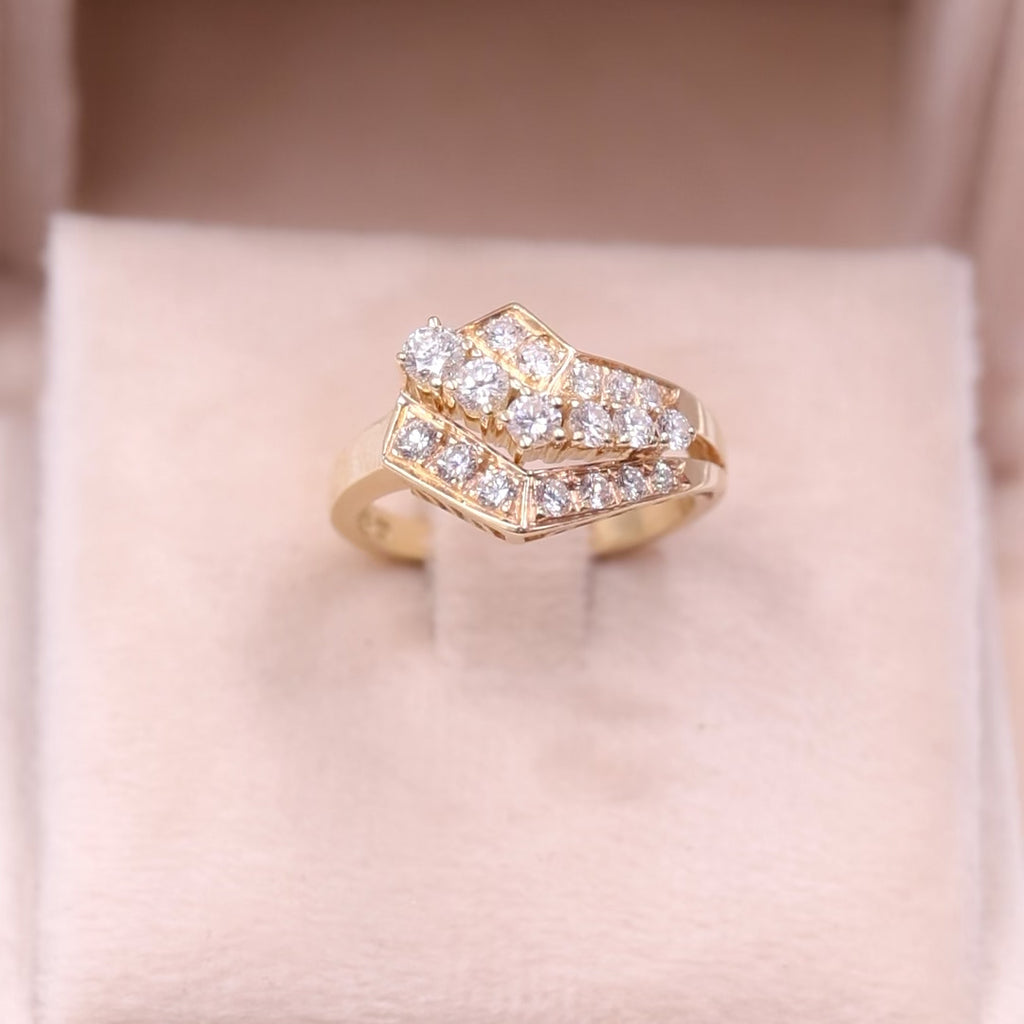 Anello vintage asimmetrico in oro giallo 14k con diamanti (0,80ctw), anni '70