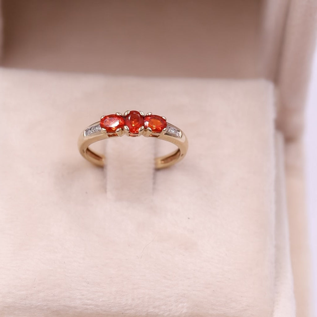 Anello vintage in oro giallo 9k con opali di fuoco e diamanti