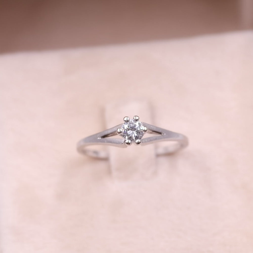 Anello solitario in oro bianco 14k con diamante (0,23ctw), anni '70