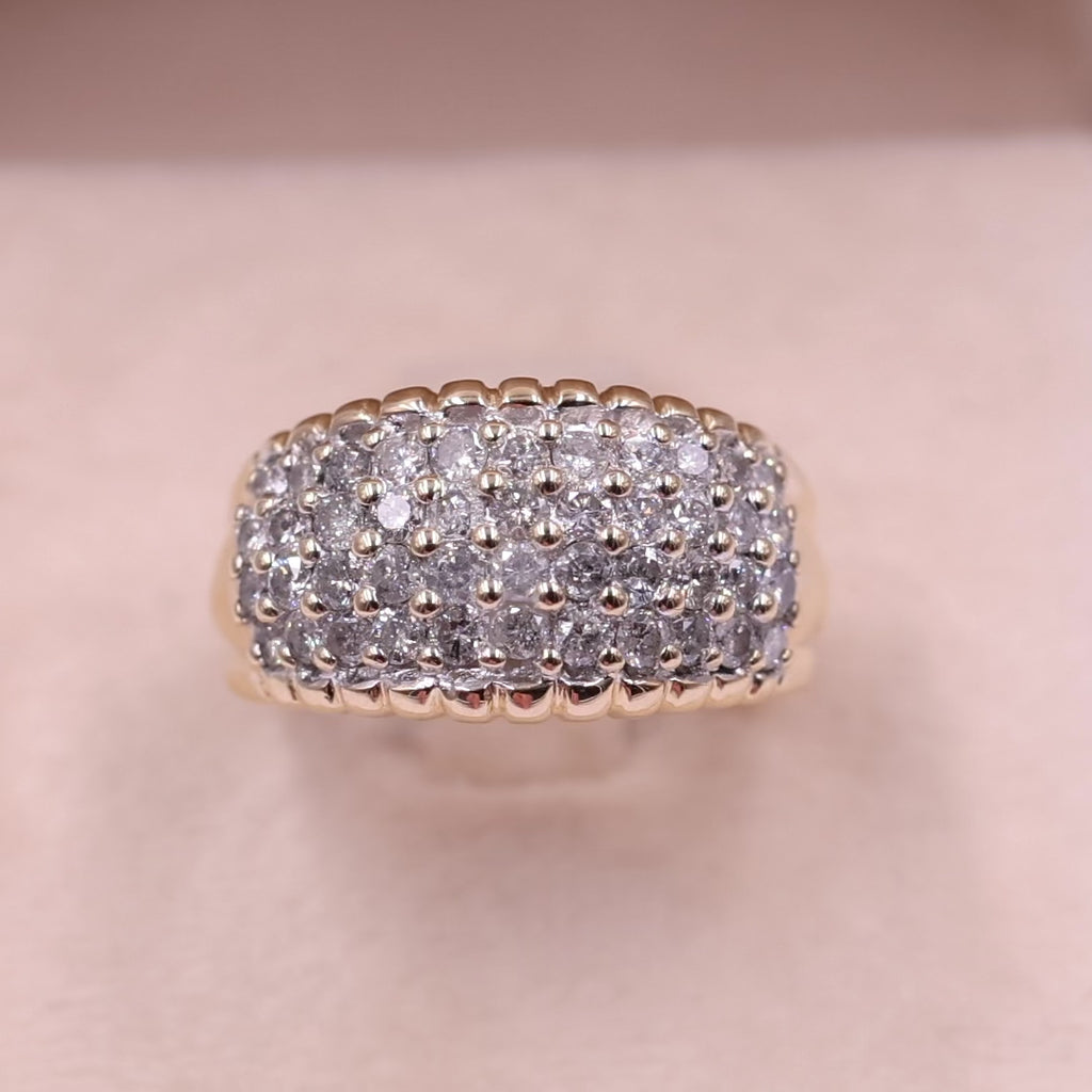 Anello vintage a fascia in oro giallo 14k con diamanti (1,32ctw), anni '70