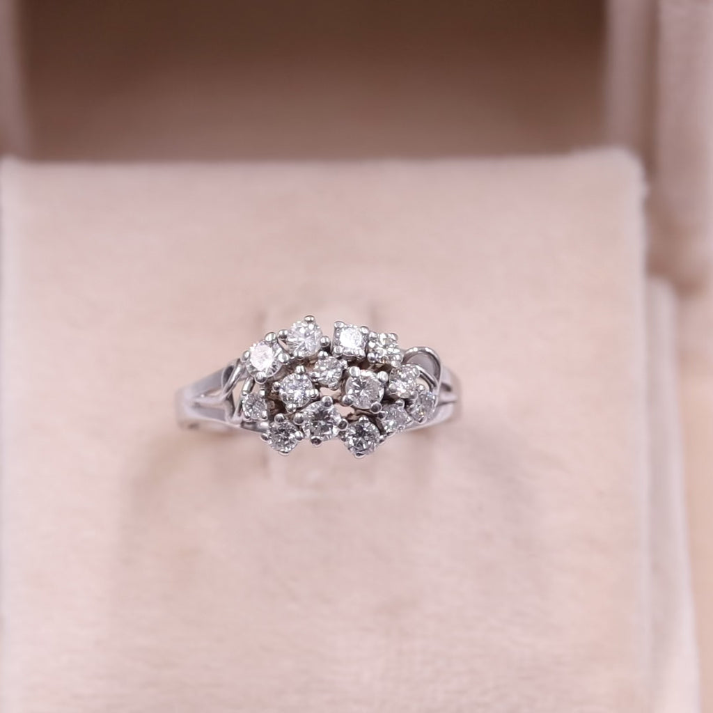 Anello vintage in oro bianco 14k con diamanti (1ctw), anni '70