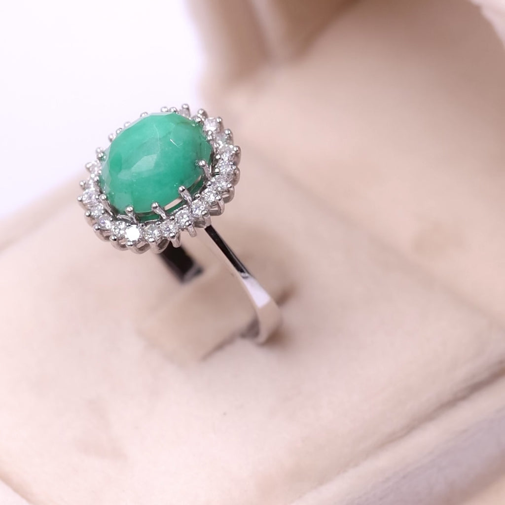 Oro bianco 14k, smeraldo sfaccettato stimato di 4ct e diamanti di taglio brillante per un totale stimato di 0,50ct